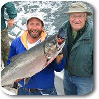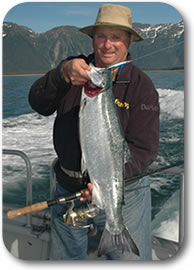 In Seward, Alaska only a few charter boats target local feeder King or Chinook salmon. These fish can prove elusive and catching one will provide a battle you wont soon forget on light tackle. We have found that spring and fall are the best times to fish for resident feeder king salmon in Seward. May through June provide an opportunity at catching our run of returning kings. Although good catches are made year round, the lack of light and unpredictable weather during the heart of winter shortens the fishing days. Kings are wiley and can be finicky until they get ready to feed. When that time comes, it can get fast and exciting. We have found the most productive method of catching the kings is trolling using downriggers. King salmon fishing in Seward requires patience, persistence and the coordination of the crew and fishermen. The results are well worth the effort.